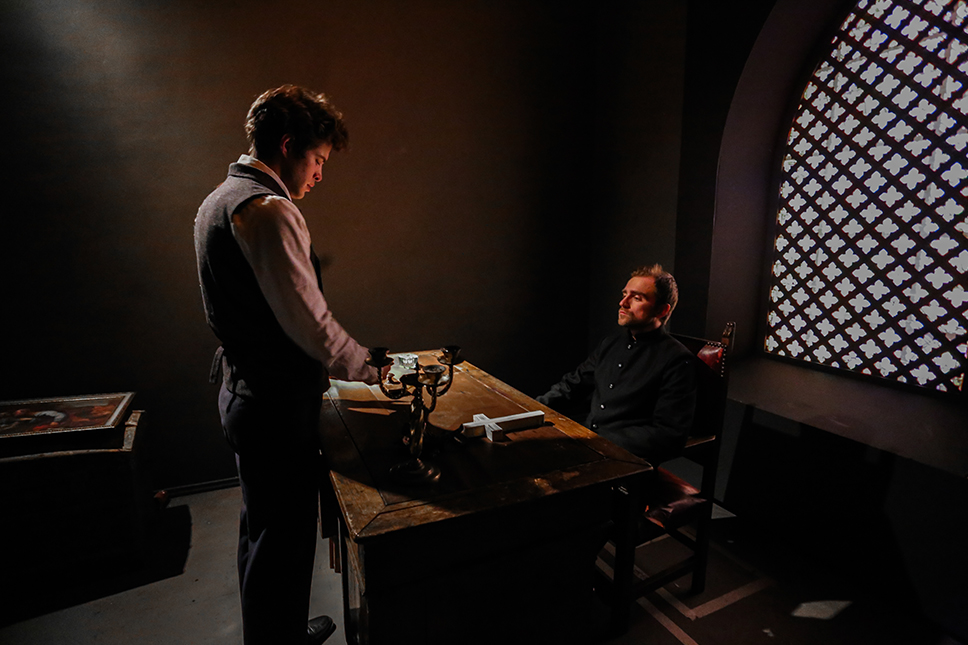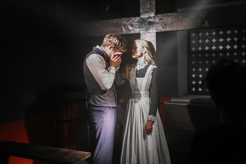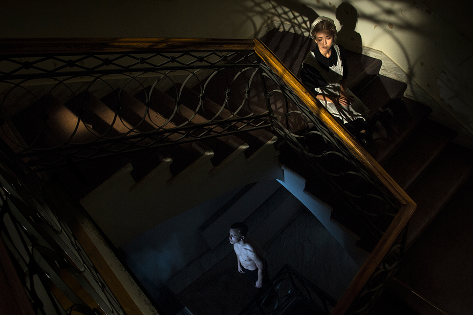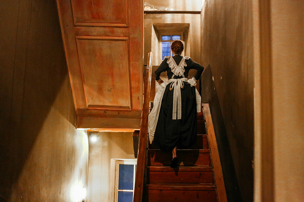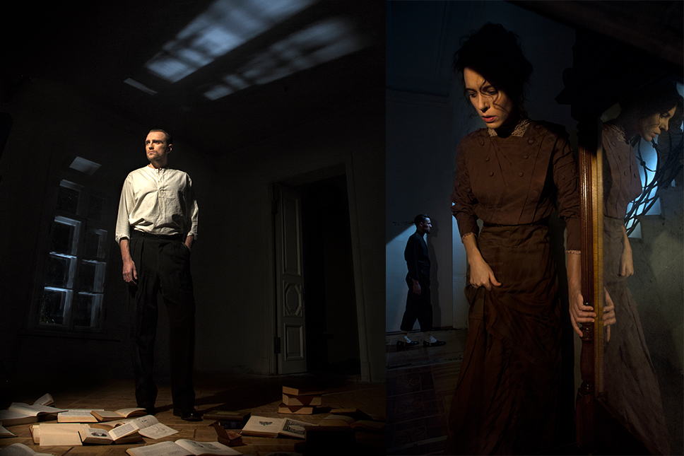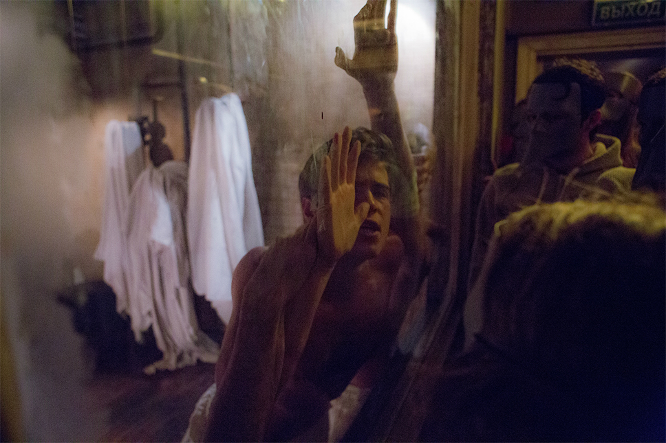 Разумеется, отдельное внимание в иммерсивном действе уделяется и хореографии как возможности не ограничиваться при рассказе истории одними лишь словами. «Диалоги мы брали из пьесы, а хореографией нужно было рассказать обо всех тех таинственных происшествиях, которые произошли в этой семье задолго до событий, описанных Ибсеном. Я начал прорабатывать хореографические образы в июле, но даже до сих пор мы что-то меняем, адаптируя отдельные элементы под помещение и учитывая реакцию зрителей», — рассказывает Мигель. Действительно, о таких хореографических сценах говорят не меньше, чем о сценах содержательных, и стараются не упустить их при визите в дом Алвингов. Момент, когда артисты собираются, например, за стеклом прачечной, выразителен настолько же, насколько эпизод объяснения — уже словесного — между фру Алвинг или пастором Мандерсом в библиотеке.