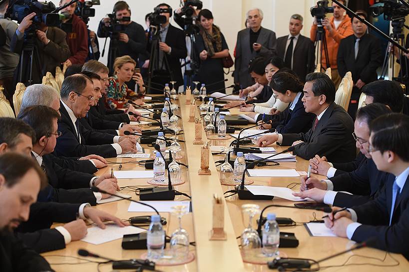 Открывая встречу, Сергей Лавров заверил, что всестороннее расширение сотрудничества с Китаем является приоритетом России. Российский министр напомнил, что Китай занимает первое место среди торговых партнеров РФ. «Взаимодействие на международной арене также становится все более весомым фактором в мировой политике,— продолжил он.— Мы демонстрируем взвешенные подходы в решении мировых проблем». Сергей Лавров напомнил, что две страны активно взаимодействуют с ООН, БРИКС и ШОС.