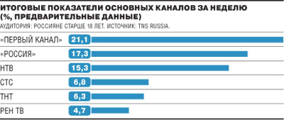 И Джек-Воробей в отличие от Москвы в общероссийском эфире уже был почти на равных с президентом. Доля аудитории у фильма на "Первом" и "Вестей недели" на "России" одинаковая — 22,5% и 22,4%, а вот рейтинг у итоговой программы даже чуть выше; у "Пиратов Карибского моря..." — 8,9%. "Чистосердечное признание" тоже уступило в остальных городах страны. Впрочем, процент аудитории (18,1%) этой, порой непостижимой для нормальной человеческой психики с точки зрения содержания программы оказался на НТВ столь же внушительным, как и в столице.