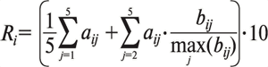 где aij — j-й показатель i-го ньюсмейкера, взятый из таблицы 1; bij — показатель i-го ньюсмейкера из таблиц 2-5 (соответствие таблице определяется значением индекса j).