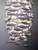Возможно, это прозвучит странно, но рыбы в моде. Ладно бы еще бабочки, птички — что-то, традиционно считающееся милым. Однако же в последнее время я везде натыкаюсь на рыб под разным соусом: рыбы нарисованы на дне тарелки (это, положим, нормально), керамические рыбы как бы в попытке самоубийства выпрыгивают из стеклянных ваз и аквариумов, керамические, стальные, фарфоровые и пр. рыбы подвешены на нитки и изображают эдакую летающую стаю, декоративные рыбы продаются на вес и поштучно, как какая-нибудь селедка. Я даже купила несколько на всякий случай, куда-нибудь тоже повешу. Доминик и Фрэнсис Бромли были одними из первых, кто почувствовал приближение рыбной моды. А возможно, они-то ее и запустили. Их первая работа — люстра Shoal из 286 фарфоровых рыбин, кружащихся вокруг лампы, вызвала полнейший фурор. Премии, выставки, публикации в журналах, копии — словом, налицо все признаки успеха. Заодно с рыбами они запустили моду на светильники из фарфора, хрупкие, тяжелые, непрактичные, но дико красивые. Следующие пару лет после премьеры дизайнеры занимались клонированием своей люстры для многочисленных рыбных ресторанов (еще бы они не набросились с заказами) и экспериментами с другими формами (например, луковица), удачными, но менее эффектными. И вот наконец-то продолжение истории: две новые версии Shoal. Надо сказать, довольно предсказуемые. GoldFish — это та же фарфоровая стая, но уменьшенная (186 особей) и покрытая 24-каратным золотом. Неплохо, но не лучший цвет для рыбы, попахивает шпротами из консервов. Вторая версия, напротив, увеличенная (386 рыб) и сделана из прозрачного стекла. Это направление куда более перспективное. Прозрачные рыбешки — явление довольно натуральное, так же как и люстра со стеклянными подвесками. Дизайнеры намекают на дальнейшее развитие событий — появление цвета. Вот это будет весело. Если только мода раньше не пройдет.