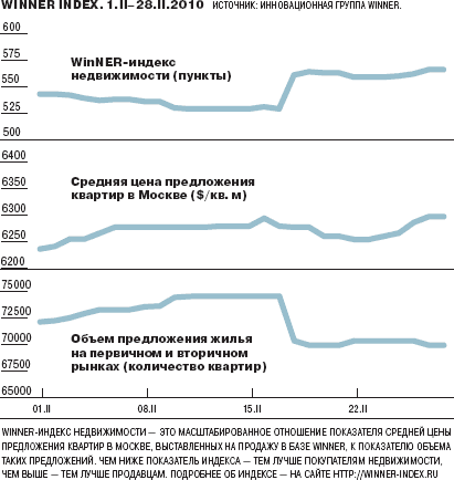 WinNER-индекс недвижимости в настоящее время находится на уровне своих значений конца сентября прошлого года. Весь прошлый год индекс методично снижался, достигнув дна к декабрю. Пройдено ли дно в декабре и являемся ли мы свидетелями начала оживления рынка, покажет развитие событий в марте и апреле.