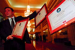 Господин Окулов в Лондоне оказался гораздо разговорчивее, чем в Москве. Сначала он рассказал журналистам, что старая советская эмблема "Аэрофлота" меняться не будет, поскольку известна во всем мире, а затем на одной из встреч проговорился о намерениях компании купить крупный пакет акций Virgin Express Ireland.