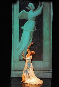 Для Сары Орселли, своей верной последовательницы и ассистентки, Каролин Карлсон сочинила новеллу "Мандала" на музыку Микаэля Гордона. Мощное соло, пространственно ограниченное двумя кругами (маленьким световым — и внешним, обозначенным рассыпанным белым песком), композиционно построено как движение из светового центра на темную периферию и обратно, к свету. Расширение пространства минималистского танца поддержано увеличением амплитуды жестов и нарастанием их эмоциональности. Монотонное кружение, подобное пляскам суфийских дервишей, разрывается бешеными батманами и хлещущими, как бич, перегибами корпуса, чтобы вновь затихнуть в медитативной прострации. Сконструировано все это с безупречной логикой, предоставляющей свободу для любых трактовок "Мандалы" — от традиционных буддийских до юнговской, психоаналитической. По хореографии эта часть "Мистического путешествия" оказалась самой сильной. Но, увы, у Сары Орселли, бывшей пловчихи, конечности минимум на десять сантиметров короче, чем требуется для "Мандалы", замешенной на телесной красоте не меньше, чем на актерском темпераменте. И хотя итальянка практически скопировала манеру своей наставницы и танцевала с истовой самоотдачей, можно представить себе, как выиграло бы это соло, будь оно поставлено лет 20 назад и исполнено самой Каролин Карлсон.