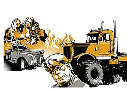 Но идея в таких рассказах - не главное. Тут важен мальчишеский интерес к специфике катастрофы, ее нюансам. Одно дело приспособить к уничтожению человечества скелетоподобных терминаторов, другое - подлодку, третье - взбесившиеся грузовики. И вот она - логика именно такой катастрофы. К обычным легковушкам грузовики, видимо, отнеслись как к предателям: Ford, впечатанный в оградительный рельс, Camaro, размазанный по забору. Именно так, с особенным удовольствием, волк давит собаку. Всему миру известен мелкотравчатый тип - злые слабаки, подлизывающиеся к здоровым ребятам. И среди грузовиков замечены подобные - пикапы. Один из них, "Шеви", глумится над трупом задавленной девушки.