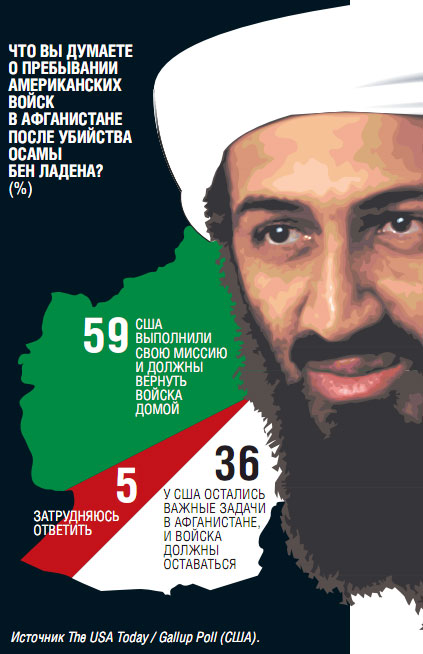 Служба социологических исследований Gallup совместно с газетой The USA Today провела опрос в США, чтобы выяснить, насколько изменилось отношение американцев к пребыванию их войск в Афганистане после смерти Осамы бен Ладена. Подавляющее большинство респондентов склонны считать, что теперь их вооруженным силам в Афганистане делать нечего.