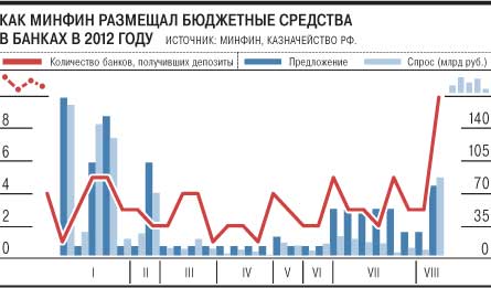 Аукцион Федерального казначейства стал ответом на просьбу Банка России расширить предложение бюджетных средств для банков, чтобы не наращивать их задолженность перед ЦБ. "Если Минфин поможет с ликвидностью, уровень задолженности банков по операциям репо расти не будет, а объем использованного банками кредитного обеспечения из ломбардного списка останется на текущем уровне,— заявлял господин Швецов в конце июля.— Таким образом, мы сможем прожить остаток года примерно с тем объемом задолженности, которая имеется сегодня в банковской системе". Согласно отчету ЦБ, во втором квартале объем задолженности банков по операциям репо доходил до 1,4 трлн руб.