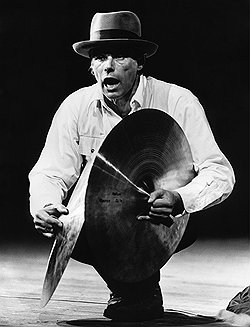 В летную школу Бойс попал сразу по окончании гимназии, где порядком засиделся, так как был оставлен на второй год в последнем классе. Не потому, что плохо учился, а потому, что удрал с бродячим цирком. На арену не выходил — рисовал афиши и кормил зверей, пока родители, добропорядочные бюргеры, не отыскали отпрыска в десятках километров от Клеве. То, что он потом станет рассказывать про службу в люфтваффе — про сбитый бомбардировщик, про заснеженные крымские степи, про татарские юрты, про знахарей и шаманов, выходивших умирающего аса оборачиваниями в войлок с медом и жиром,— стоит делить надвое. А про цирковую эскападу — все правда: не то чтобы ребенок с детства тянулся к прекрасному — он тянулся к естествознанию, к приключениям и кочевой жизни, любил зверей, любил рисовать и, учась в гимназии в Клеве, захаживал в мастерскую одного тамошнего скульптора, который почему-то рискнул показать ему, мальчику из гитлерюгенда, фотографии скульптур "дегенеративного" Вильгельма Лембрука. И хотя Бойс сам подбросил интерпретаторам-психоаналитикам евразийский миф о герое Запада, воскрешенном магией Востока, психоаналитики должны бы ухватиться за эту детскую шалость. Из которой при желании можно вывести всю бойсовскую натурфилософию, весь бойсовский зоопарк, все галерейные бдения вдвоем с койотом и попытки объяснить картины мертвому зайцу — вообще каждая флюксус-акция Бойса была синтетическим действом, но не в смысле — боже упаси — вагнеровского Gesamtkunstwerk'а, а скорее в смысле циркового парада-алле.