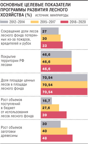Вчера рабочая группа экспертного совета при правительстве рассматривала в Минприроды доработанный Рослесхозом проект программы развития лесного хозяйства на 2012-2020 годы. Ее основными целями заявлены "повышение эффективности использования, охраны, защиты и воспроизводства лесов и обеспечение стабильного удовлетворения общественных потребностей в их ресурсах и услугах при гарантированном сохранении ресурсно-экологического потенциала и глобальных функций". Запланированное финансирование программы на весь период оценено в 584,9 млрд руб., из которых 295,9 млрд руб. возложено на федеральный бюджет, 74,9 млрд руб.— на местные бюджеты, а оставшиеся 214,5 млрд руб. должны поступить из частных источников.
