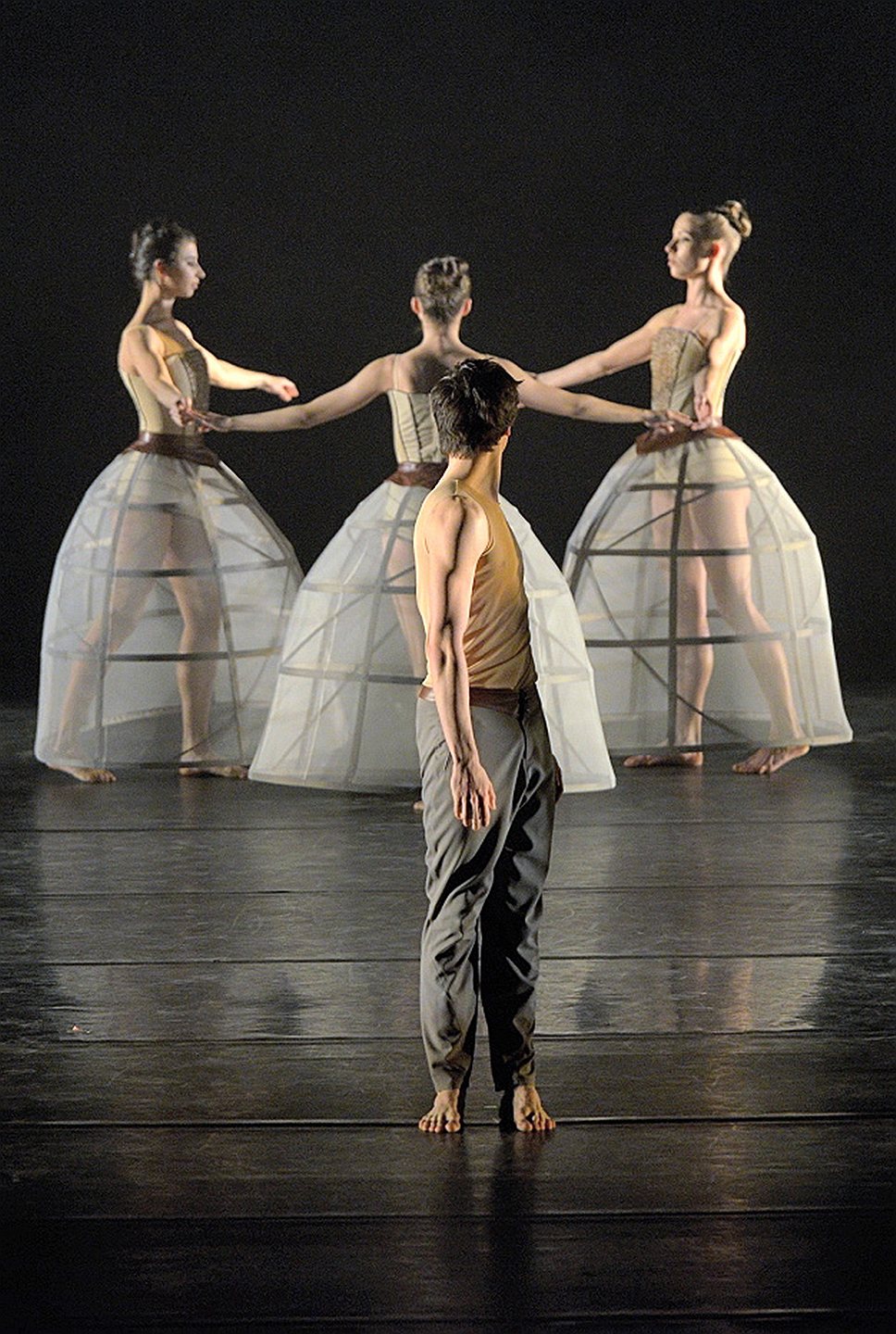 "Intensio" Юрия Смекалова вызвал самые разнообразные ассоциации — от лыжников до инопланетян. В действительности же авторская программа, изложенная хореографом своим танцовщикам и вмиг разнесшаяся по театру, куда как глобальнее и актуальнее: природные ресурсы, их хищническое использование и грядущая экологическая катастрофа — такое ощущение, что господин Смекалов выиграл грант от Министерства природных ресурсов на освещение его деятельности. Творческое видение балетмейстера небанально: три геолога-разработчика исследуют недра, попеременно вступая в контакт с Нефтью, Газом и Лесом (три танцовщицы). После насильственных действий над природными ресурсами добытчики понимают величие мироздания и собственную ничтожность. На премьере произошла вынужденная коррекция смысла: Нефть слегла с высокой температурой и выбыла, превратив "Intensio" из секстета в квинтет. Номер сразу же наполнился напряженным драматическим содержанием, обнаружив, насколько хрупок и уязвим современный мир в отсутствии черного золота.