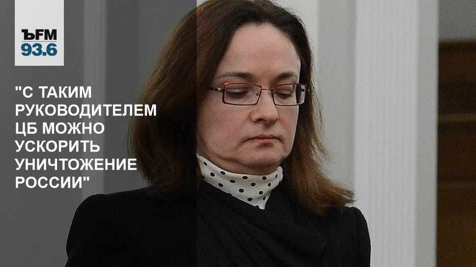 –– Это будет отмороженный либеральный фундаментализм. Это будет более либеральная политика, чем даже у господина Игнатьева, потому что у господина Игнатьева все-таки присутствовал достаточно большой здравый смысл. Я могу сказать: так заканчивается путинская стабильность. Потому что с таким руководителем Банка России, я думаю, можно ускорить уничтожение России, можно заталкивать нас в системный кризис и дальше в смуту, но обеспечить развитие чего бы то ни было невозможно. Достаточно вспомнить ее пребывание в Минэкономразвития.