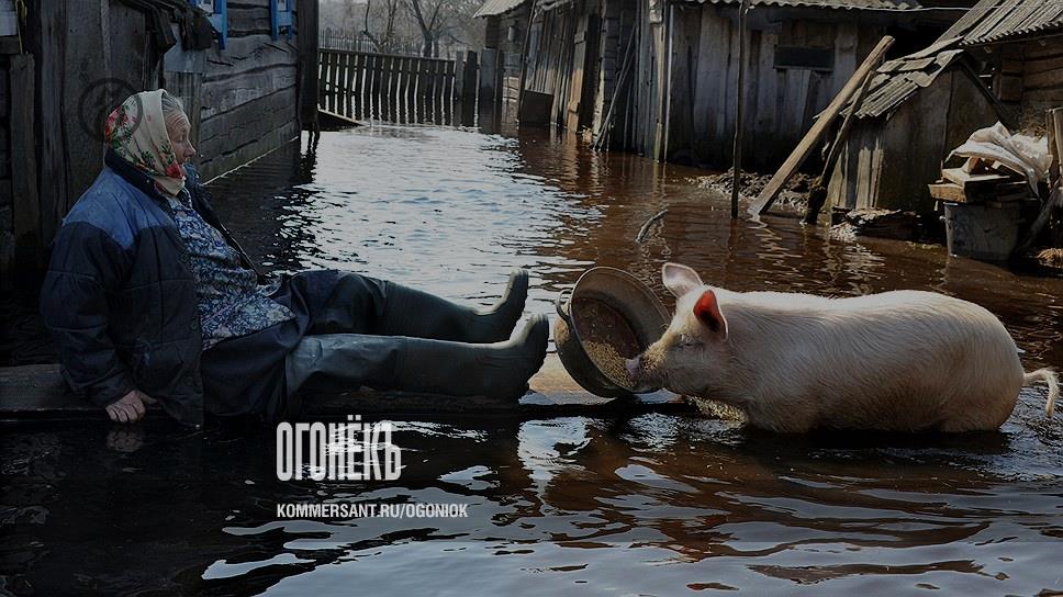 Резкое потепление после долгой и крайне заснеженной зимы значит одно — приход "большой воды". С неудобствами весеннего половодья уже столкнулись обитатели белорусской деревни Снядин вблизи реки Припять (на фото). Около двухсот жителей деревни оказались отрезаны от мира — единственную проселочную дорогу затопило. Впрочем, жизнь течет своим чередом, и пожилой женщине приходится кормить свою свинью, почти не выходя из дома. Как справятся с половодьем россияне, узнаем совсем скоро: приход большой воды ожидается на следующей неделе