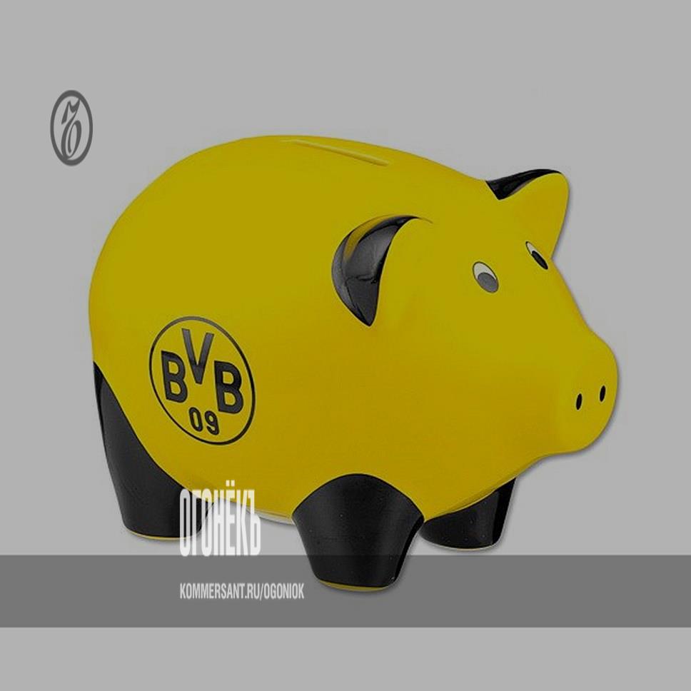 Одна из самых ярких (и не только в плане атрибутики) футбольных команд Германии на этой неделе будет сражаться с мадридским "Реалом" за выход в финал Лиги чемпионов. Мы решили посмотреть, что предлагает своим болельщикам "Боруссия" накануне самых важных матчей сезона помимо традиционных шарфов и маек, и наткнулись вот на такую симпатичную свинью-копилку (стоимостью 12,95 евро). Интерпретировать ее можно так: в преддверии игр с "Реалом" на "Боруссию" не ставит почти никто, но победи немцы — и заработать на этом можно будет достаточно много.