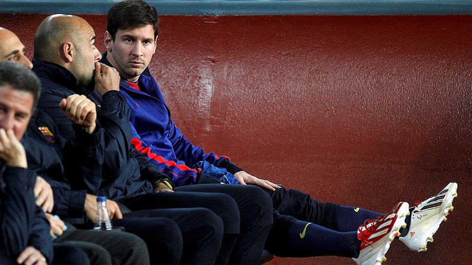 В течение часа Лионель Месси (крайний справа) неуютно чувствовал себя на скамейке запасных, а Barcelona — на поле