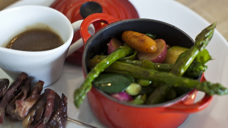 В перигорском ресторане "Глицинии" так и не наступившей весной, когда даже местные ореховые деревья не решались выпустить на холод листья, я попробовала только что снятые с огорода молодые овощи, томленные в утином жиру. Набор овощей, разумеется, произвольный, состав блюда можно варьировать в зависимости от того, что выросло. Блюдо так и называется — жардиньер, то есть "садовый (и огородный) набор". Все молодые овощи (кроме горошка) мою и даже не скребу ножом, а просто протираю щеткой: у них еще почти нет кожицы. Морковки разрезаю на длинные цилиндры — примерно на три части. Вытираю бумажными салфетками, чтобы вода затем не смешивалась с жиром. Развожу на сковородке припасенный жир, и когда он становится совсем прозрачным, опускаю в него овощи — все, кроме того же горошка. Температура при этом нужна не слишком высокая — корочка не требуется. Помешиваю, чтобы овощи обволоклись жиром, и даю им потомиться минут пять, а потом заливаю бульоном и только теперь делаю огонь посильнее — чтобы закипело, и уменьшаю снова. Бульона нужно ровно столько, чтобы овощи были полностью им залиты. Все томится еще минут 15, тогда добавляю, наконец, горошек и оставляю еще минут на пять. Пробую кончиком ножа, солю, перчу. Для полного удовольствия перечитываю "Трех мушкетеров".