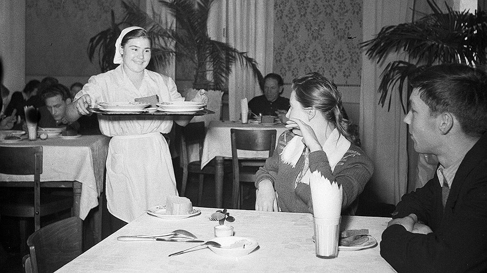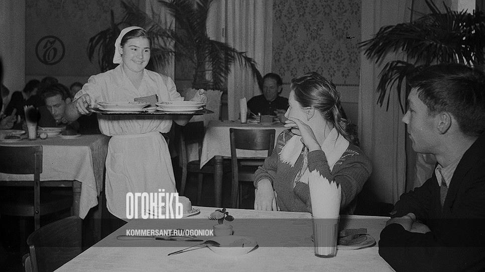 Качество блюд и почти полное отсутствие сервиса в советских столовых не раз становились сюжетами анекдотов. Образцово-показательные заведения общепита вроде того, что представлено на этом фото, не в счет. На самом деле белые скатерти, посуда из керамики, а не из алюминия или жести, полный набор столовых приборов (нож был скорее редкостью) и улыбчивая официантка (это при том что снимок сделан 1 января) — все это было исключением, а не правилом. Казалось, столовые как класс остались в советском прошлом. Но нет. Шанс сэкономить и система самообслуживания, которая сводит к минимуму контакт с неприветливым персоналом (здесь, к сожалению, мало что изменилось), вернули столовые в нашу реальность. Что такое столовые нового типа и что в них едят, читайте в материале "Вкусно, свежо и бистро".