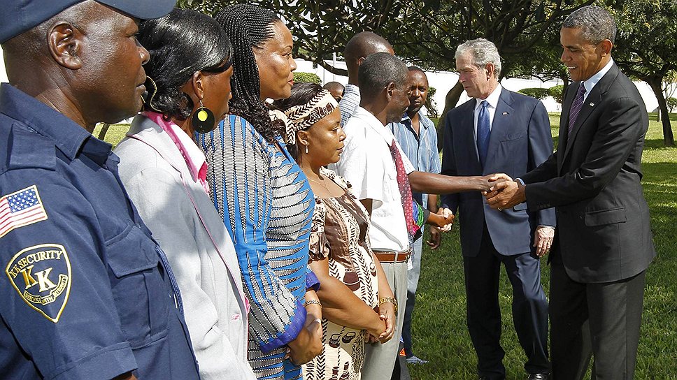 Еще две недели назад любого, кто предположил бы, что нынешний президент США Барак Обама и его предшественник Джордж Буш-младший могут встретиться, поговорить и остаться довольными друг другом, сочли бы помешанным. Тем не менее на прошлой неделе 43-й и 44-й президенты США встретились в Танзании и прекрасно провели время вдвоем. Тележурналисты запечатлели Обаму и Буша-младшего, которые вместе почтили память погибших в результате теракта у посольства США в Дар-эс-Саламе в 1998 году. Примерно в то же самое время 43-я и 44-я первые леди — Лора Буш и Мишель Обама,— явно очень довольные собой и друг другом, принимали участие в саммите африканских первых леди и, смеясь, рассказывали собравшимся о тяжкой доле жен американских президентов.