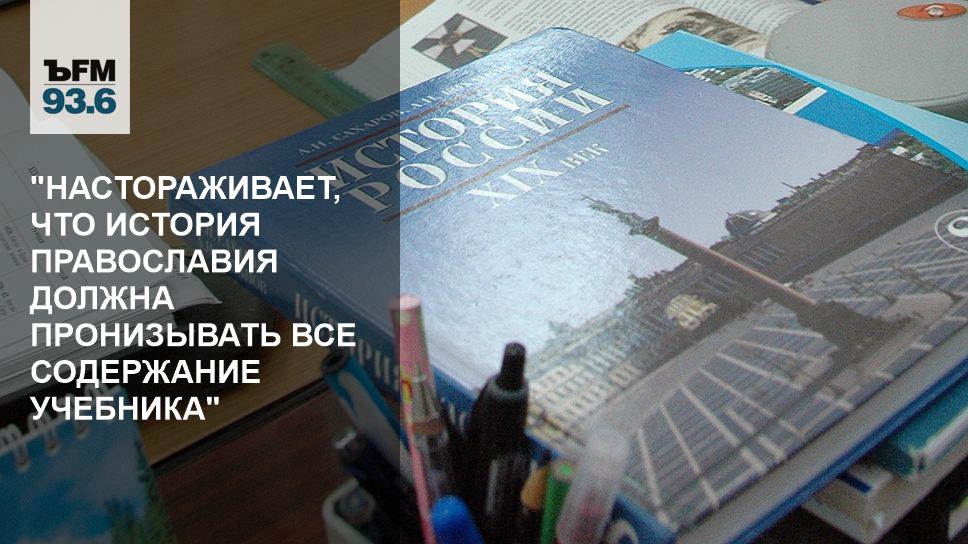 — Я тоже начала читать рекомендации, которые могут быть положены в основу концепции нового школьного учебника, и там говорится, пятый пункт: "История религии, в первую очередь, православия, должна излагаться системно и пронизывать собой все содержание учебника". Давайте мы спросим у господина Молева, зачем это нужно?