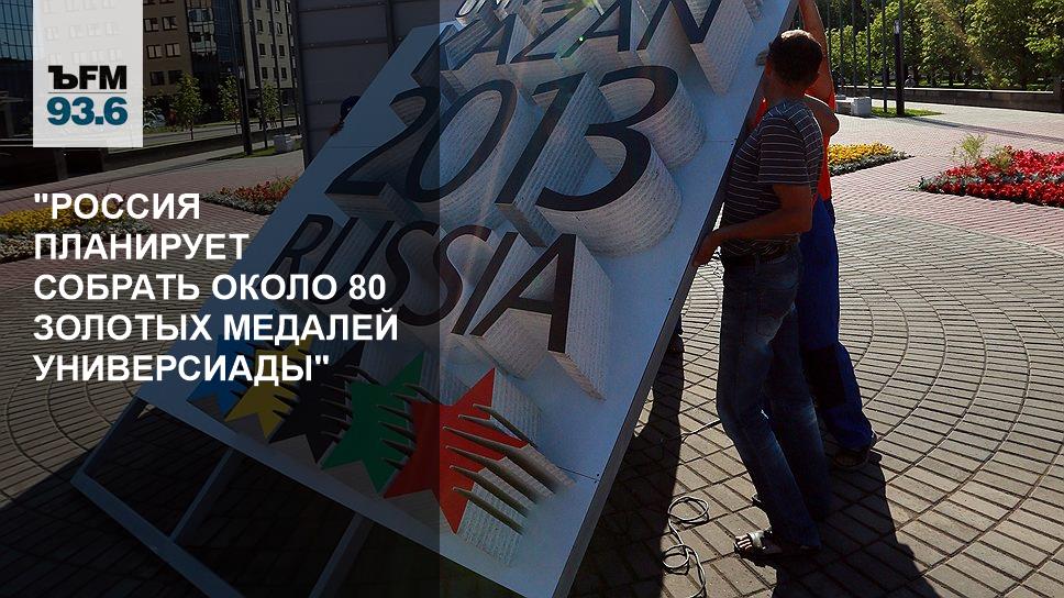 — Сборная России имеет в своем составе на сегодняшний день 663 основных участника плюс 81 запасного. Декларируется, и Виталий Мутко в частности об этом говорил, и местные спортивные руководители, что в Казани Россия планирует собрать около 80 золотых медалей. Это позволит опередить всех конкурентов. Они, в общем, обычные — Китай, США, Украина.