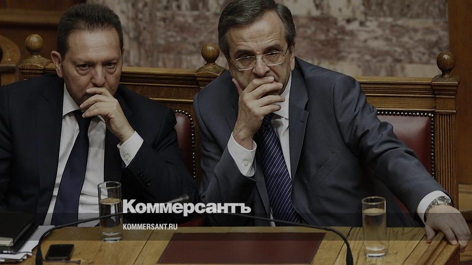 Премьер-министр Греции Антонис Самарас (справа) и министр финансов Греции Яннис Стурнарас