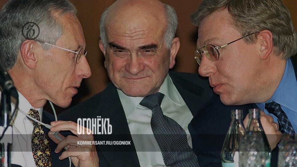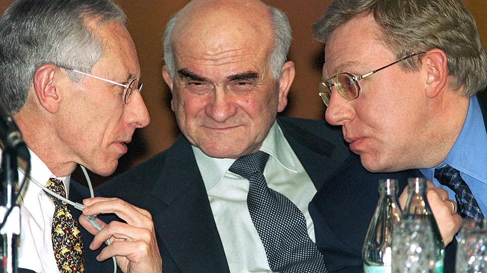 Слева направо: первый заместитель директора-распорядителя МВФ Стэнли Фишер, бывший министр экономики России Евгений Ясин и вице-премьер, министр финансов России Алексей Кудрин. 2000 год
