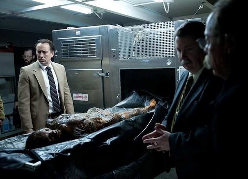 Герой Николаса Кейджа — тоже прекрасный семьянин, видимо, под давлением жены решивший уйти из полиции в нефтяную компанию. Однако за две недели до ухода ему поручают дело о пропадающих уже несколько лет женщинах, тела которых периодически находят в окрестностях Анкориджа окоченевшими и обглоданными зверьем. Одной жертве, как записано в протоколе, пытались отпилить голову саперной лопаткой, но в общем визуальной жестокости в "Мерзлой земле" немного, да и вообще избранная режиссером-дебютантом Скоттом Уокером документальная стилистика скорей мешает разглядеть какие-то отвратительные подробности (зато танцы в стриптиз-баре показаны очень внятно).