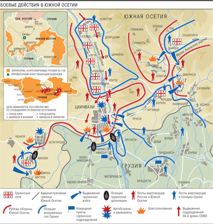 17:45 Госминистр Грузии Темур Якобашвили сказал: "Цхинвали полностью нами контролируется", а Минобороны РФ — что "подразделения 58-й армии СКВО находятся близ Цхинвали".