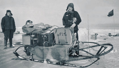 - Самолеты привезли Папанину не только грузы, но и пятого участника зимовки — полярную лайку Веселого (пес не попал в кадр, потому что тут же убежал обследовать льдину).