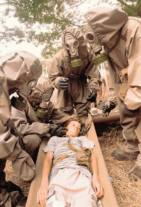 Как в добрые старые тридцатые годы, на Ставрополье устроили «химическую тревогу». Натянув противогазы выходцы из прошлого принялись хватать беспомощных «потерпевших». Интересно, с чьей стороны ждут они химической атаки сегодня?