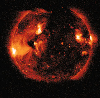 Сложно делать прогноз состояния нашего капризного светила на целый год, большие трудности вызывает даже прогноз на полмесяца. Вместе с тем некоторые вещи можно предсказать почти наверняка. Во-первых, Солнце будет. Не взорвется, не превратится в сверхновую... Оно в полном расцвете сил — нашему светилу где-то 5 миллиардов лет от рождения, и еще примерно столько же суждено ему прожить (потом — сжатие и медленное угасание). Во-вторых, сейчас развивается новый одиннадцатилетний цикл солнечной активности, это уже двадцать третий цикл с 1700 года. С XVIII века ученые набрали достаточно много данных о периодическом возрастании активных явлений, и можно смело утверждать, что наступающий год будет более богат на пятна, активные области, вспышки и последующие магнитные бури на Земле, чем год уходящий. Активность будет нарастать скорее всего до 2000 года, так что, вероятно, именно последний год второго тысячелетия и будет Годом активного Солнца. В связи с этим можно будет предполагать больше неприятных последствий для больных людей, в первую очередь сердечников, которые чувствительны к возмущениям магнитного поля Земли. Это, впрочем, бывало всегда, во все предыдущие циклы солнечной активности. Неприятным новшеством будет для многих южных жителей повышение ультрафиолетового излучения из-за неожиданного появления в начале 1998 года новой озоновой дыры, уже не над далекой Антарктидой, а над экваториальной областью. Озона, очень эффективно поглощавшего ультрафиолет, становится все меньше и меньше. Если раньше это излучение было страшно только неосторожным, загорающим на пляжах слишком долго, то ныне уже и живущим на экваторе придется быть осторожными, поглядывая на наше светило.