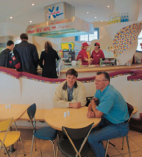 Что касается латвийских кафе, память о которых неистребима, — первым гастрономическим впечатлением от Риги в этот мой приезд была пельменная. Владелец — русский ресторатор Владимир Барсук. Однажды шел по улице, понравился ему один интерьер, он зашел и спросил имя дизайнера. Им оказался Юрий Луховский. Встретились, поговорили — и с тех пор не расстаются. С поразительным разнообразием Луховский оформляет все рестораны Барсука: дорогой итальянский, европейский стейк-хауз и то, к чему Барсук перешел теперь: кафе самообслуживания, дешевые, но очень красивые. И все это без «крыш» и баснословных взяток чиновникам. Поешь — и сто раз подумаешь, жалеть русских в Латвии или завидовать им. Переехавшая на ПМЖ в Латвию уже взрослой Марина Лепченко, создатель и генеральный директор рижского кинофестиваля «Балтийская жемчужина», считает, что мы должны завидовать: от латышей, по ее словам, она получала помощь по первому слову, а от русских — одну головную боль...