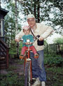 И вот я — уже в ранге «дедика Иг» — кручу педали, помня напутствие дочери: «Не урони ребенка!» Моя двухлетняя пассажирка Сашка, называющая себя слегка по-японски «Са-ся», вертит головой, защищенной от солнца краснополосатой бейсболкой, ерзает вскрикивая — это она увидела пасущихся лошадей на клеверном поле.