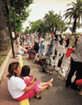 — город (а надо бы написать «набережная», поскольку настоящий Канн начинается и заканчивается на Круазетт) дорогих костюмов, сумочек, причесок, украшений. Тут даже бикини иногда носят из золота. Официальный Канн допускает и даже приветствует фривольность нарядов — но только женских. Канн свято и с оружием в руках оберегает свою главную лестницу и своих звезд (рука перед Умой Турман, она же Термен, отгоняет надоедливых журналистов). Сами звезды, впрочем, стараются вести себя демократично. И Мелани Гриффит (на закрытии), и особенно Николь Кидман (на открытии) бросались с лестницы в толпу пожимать руки и раздавать автографы.