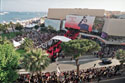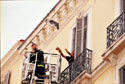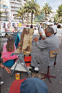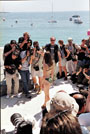 — в это время зеваки-папарацци в ожидании явления звезды собираются у главных отелей, а профессиональные фотографы (в ожидании все того же) отправляются на закрытые пляжи. Но звезды капризны. Приходится довольствоваться чем Канн послал. Фотографы ждали на пляже Люка Бессона — но пока довольствуются девушкой, которую кто-то из своих же и привел. Туристы-папарацци вместо реального Брэда Питта довольствуются фанерным. Ладно: близится вечер. В поисках звезд толпы перебираются к фестивальному Дворцу (а уж стремянки, чтобы лучше видеть, были принесены заранее).