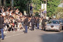 Этот фестиваль (безусловно, № 1 в мире) самый буржуазный на свете. В один из вечеров, числа этак 17 мая, пытаясь обогнуть непроходимую толпу зевак у красной лестницы Дворца фестивалей (спешил на просмотр в зале по соседству), я шмыгнул было в свободный коридор, оставленный для звездно-гостевых лимузинов, и тут же был остановлен парой жандармов при полном параде. Не разглядев цвета аккредитации, они сказали (весьма вежливо), что, хоть я и фотокорреспондент, но обязан быть в смокинге с бабочкой. Я ответил, что никакой я не фото, что у меня иной цвет и что вообще иду по своим делам, и все же был вынужден избрать другой маршрут, сквозь надоедливую толпу: никто вечером — ни звездный гость, ни телеоператор, ни прохожий — не смеет приблизиться к знаменитой лестнице, строя из себя по одежке демократа, тем более анархиста.