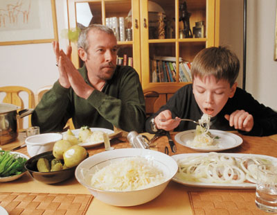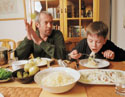 — Ты чего меня сразу к столу тащишь? Какой-то ты остался жутко гостеприимный!