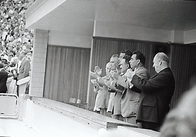 Когда Тихонов принимал прославленный московский клуб, а вместе с ним и сборную (хотя, наверное, точнее иная формула — сборную, а вместе с ней и ЦСКА), зрители и высокое начальство — живы еще были вожди, которых я нередко видел в правительственной ложе «Лужников»: Брежнев, Суслов, Устинов, — приходили не просто на ЦСКА, а на первую тройку: Михайлов, Петров, Харламов, на Владимира Викулова и Владимира Лутченко, на их замечательных соратников.