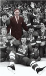 Начиная с осени 1979 года процесс смены поколений в нашем хоккее подошел к своему часу пик. Одновременно или почти одновременно сошли те хоккеисты, которые составляли костяк сборной СССР: защитники Александр Гусев, Геннадий Цыганков, Юрий Ляпкин, Владимир Лутченко, нападающие — и какие! — Владимир Викулов, Александр Якушев, Владимир Шадрин, Борис Михайлов, Владимир Петров, трагически ушел из жизни великий хоккеист Валерий Харламов.