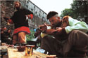 Утро выборгской битвы началось с массового опохмела — окрестные магазины за три дня фестиваля делают месячную выручку. Шотландец тульской ветви клана МакДаун (весу в нем килограмм 120, под стать ему и родичи) выливает в пивную кружку бутылку шампанского и выпивает залпом. На столе шотландцев громадная сковородка с макаронами по-флотски.