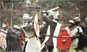 Гарольд сзывает народ на бой. У ворот замка очередь за билетами — «цивилы» спешат видеть. Девушка Алена из администрации замка, расчищая поле боя, палкой гоняет фотографов. Гарольд через мегафон представляет бойцов публике. Странствующий рыцарь из Екатеринбурга поднимает забрало, с трудом снимает железной перчаткой очки с толстыми стеклами и передает их на хранение полной Прекрасной даме постбальзаковского возраста. Новгородцы и их союзники — монголы покидают двор крепости и ждут сигнала к штурму. Обороняющиеся ливонцы остаются во дворе. Менестрели поднимают боевой дух воинства самодеятельной рыцарской песней: