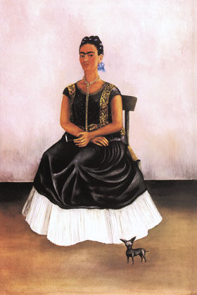 Оставшись одна, Фрида еще глубже ушла в живопись, странную, глубоко личностную. Натюрморты и автопортреты. Чтобы все время иметь перед собой собственный образ, она окружила себя зеркалами. Врач по ее просьбе вставлял маленькие зеркальца в гипсовые повязки, иногда практически полностью покрывавшие ее измученное тело. А под пологом своей постели она закрепила человеческий скелет, прозванный Риверой «верным Фридиным любовником».