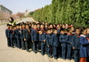 Мы едем по широченному проспекту Кван Бок. Вдоль дороги строем идут пионеры со счастливыми лицами. Регулировщица в голубой форме артистично размахивает жезлом — машин в Пхеньяне так мало, что потребности в светофорах нет до сих пор. Как и в широченных проспектах.Наша сопровождающая рассказывает: «В трудные годы экономической блокады молодежь взяла на себя самые серьезные обязательства. Дорогу в Нампхо построили кирками и лопатами. Землю таскали мешками. Молодежь продемонстрировала высокий коллективизм и опору на собственные силы». Дорогу строили пять лет назад. Государство не могло обеспечить строителей даже рисом. «Как же питались?» — спрашиваю. «Сами питались», — отвечают.