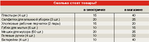 Коробейников любят и потому, что цены на товары в электричках на порядок меньше, чем в магазинах (см. таблицу). Почему? Вывод напрашивается сам собой: дело в качестве. Большая часть продукции сильно просрочена, и это касается не только старых глянцевых журналов. Но если продукты у торговцев лучше не приобретать или перед покупкой внимательно изучать срок годности, то бытовых мелочей это мало касается. По большому счету, какая разница, что губку для мытья посуды следовало выкинуть еще в 2000-м?