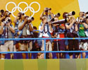 Мы думали, вот начнется легкая атлетика и все изменится. Как мы болели за Татьяну Лебедеву! А с каким трудом, обманув бдительность организаторов, мы пробрались с камерой на платформу прямо над сектором по тройным прыжкам и записали там сумасшедший по крутизне стэнд-ап (корреспондент в кадре) на фоне разбегающейся спортсменки. Никто из экспертов не сомневался в ее золоте. И кто знал эту гречанку, которая перед каждым прыжком поворачивалась, раскинув руки, к заполненным трибунам и впитывала адские децибелы десятков тысяч глоток: «Хеллас! Хеллас!». А потом улетала далеко за 15 метров. В общем, Лебедева с трудом выиграла бронзу.