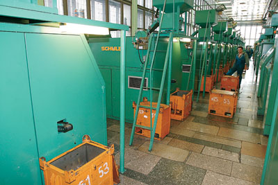Проверенные деньги из ящика взвешивают машины и по весу расфасовывают в белые холщовые мешочки. В одном — 40 рублей копейками, в другом — 1190 десятирублевыми монетами. И эти мешки увозятся на склад. Удивительно, но с петровских времен технология изготовления металлических денег практически не изменилась.