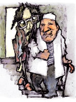 Шарканье спускалось к нам. Жрец в белом с ритуальным саквояжем в руке важно прошествовал мимо |