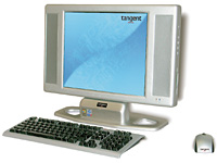 Американская компания Tangent представила свой вариант настольного компьютера. Впервые вам предоставляется возможность убрать с глаз долой громоздкую и неэлегантную коробку для «железа»: весь системный блок целиком помещается за дисплеем. Новинка называется Pendant LCDPC-7500. Она представляет собой 17-дюймовый LCD-монитор со встроенным блоком 533/800 МГц. Есть видеокарта и аудиоколонки, жесткий диск на 80 Гб, привод к пишущему DVD. Кроме того, пользователь может подключаться к Сети через Wi-Fi и Ethernet, а также смотреть ТВ через тюнер. Компьютер предназначен для домашнего пользователя и офисного работника. Стоит Pendant $1300, в продаже появится в октябре.