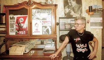 | Александр Городецкий у партийной стенки. Газеты на стене - это не ремонт, а символ политизированности |