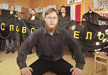 Акции. В летнем лагере под Звенигородом перед евразийцами не выступали телеведущие и поп-звезды. В полуразвалившемся пансионате не было даже чистых скатертей. Зато было много практических занятий, на которых интеллигентные юноши учились драться и кричать лозунги вроде «Тимошенко - вон, Ющенко - в Вашингтон!» и «Нет - оранжевому расколу!». Практически евразийцам уже удалось пару раз применить полученные знания: при попытке сорвать митинг ненавистного СПС удалось даже уронить одного пожилого либерала.