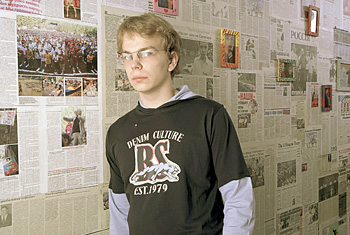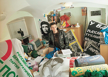 | Двое в комнате. Лидер московского «Молодежного Единства» Алексей Шапошников знает, на чьем фоне фотографироваться |